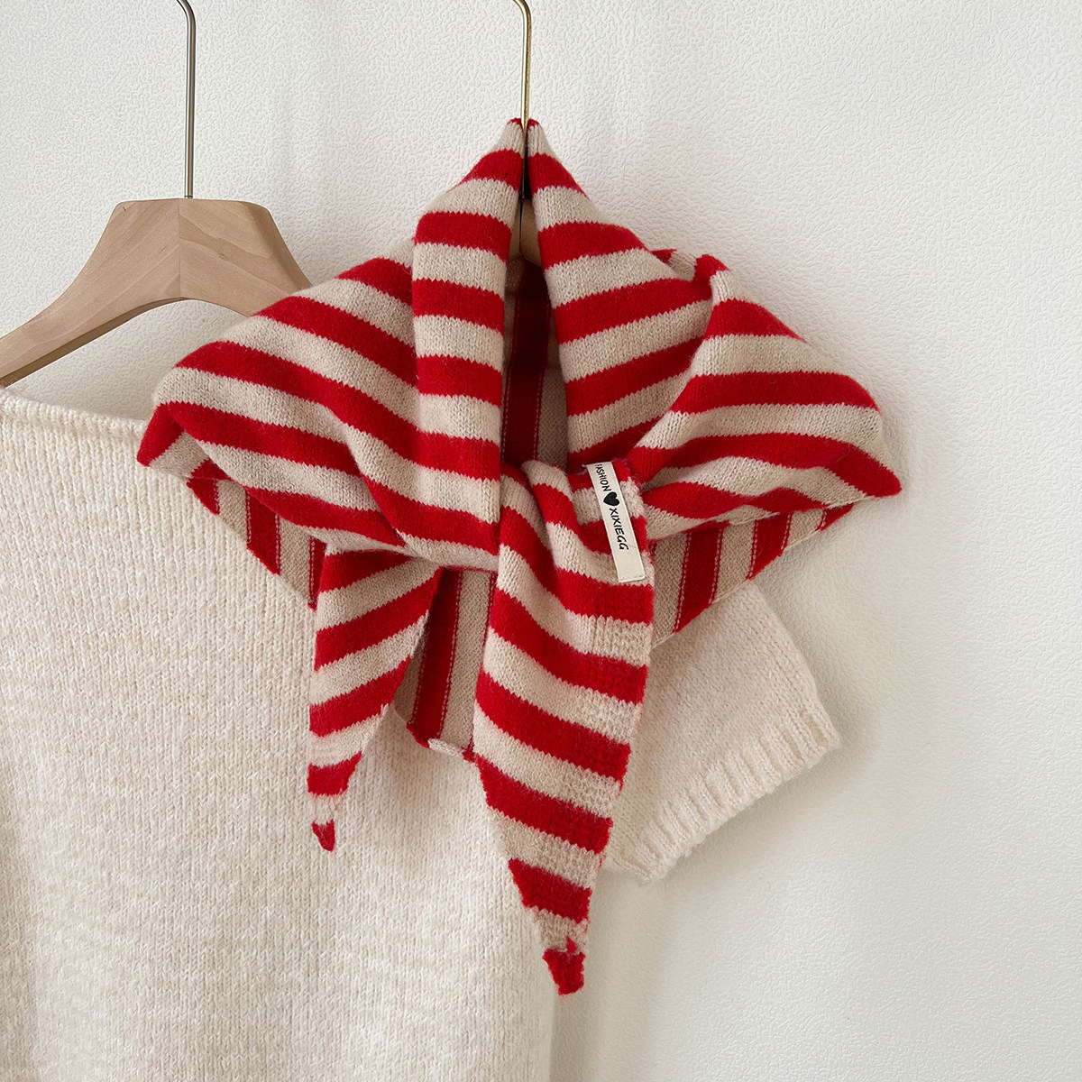 条纹羊毛披肩领巾外搭女春保暖三角围巾围脖红色黑色咖色绿色白色