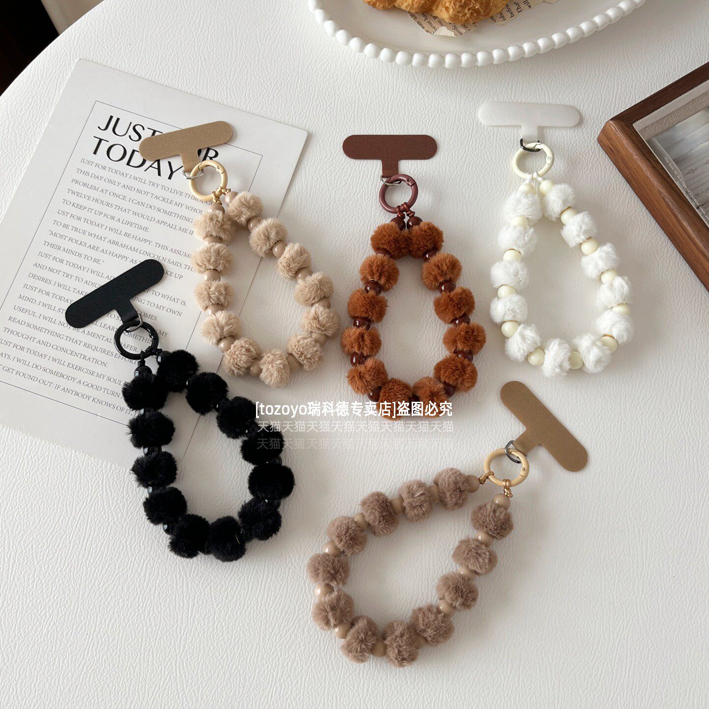 TOZOYO绝美手机链挂手腕串珠挂绳漂亮毛球防丢绳包挂饰结实短款腕带挂链轻奢高级感百搭链条女毛绒手链垫片壳