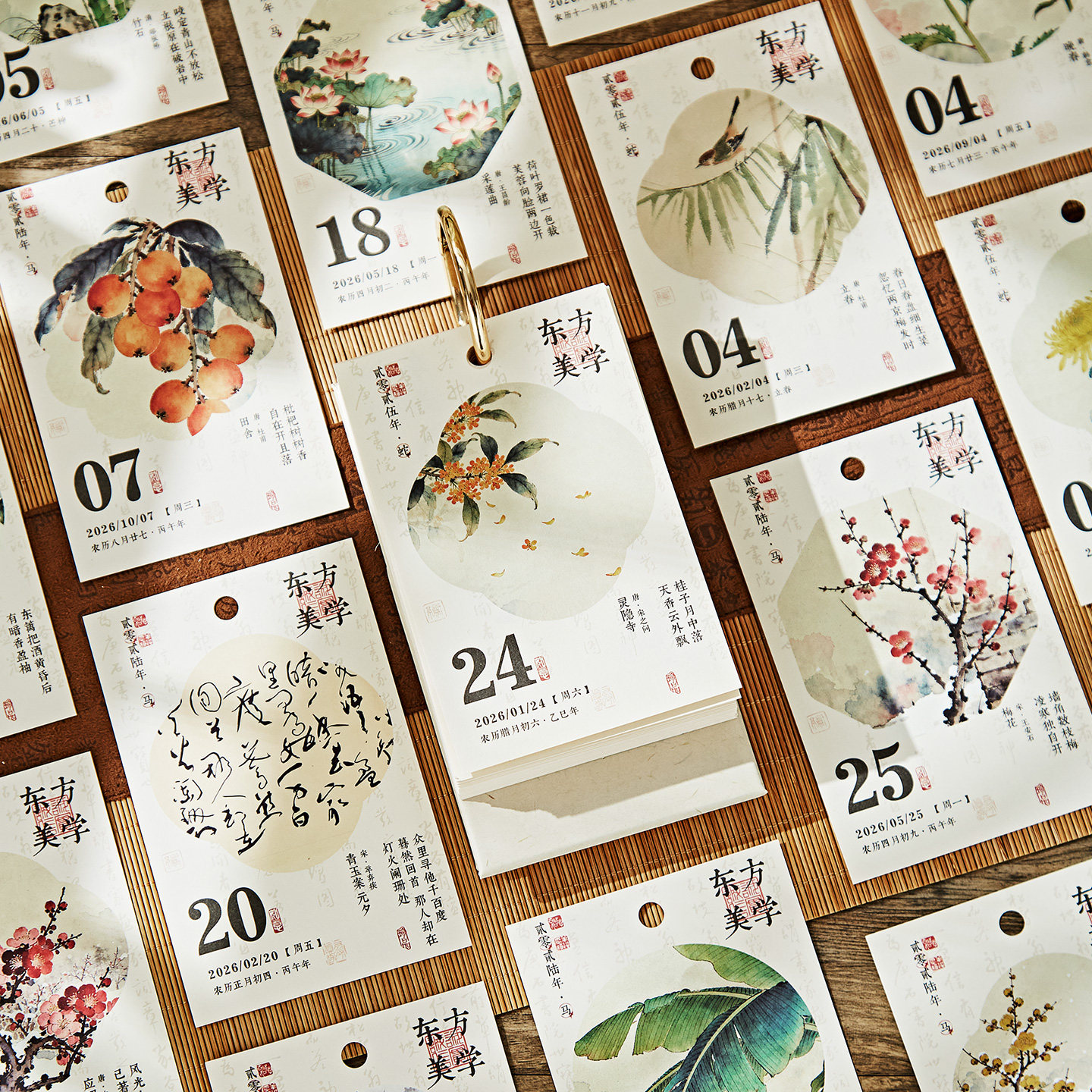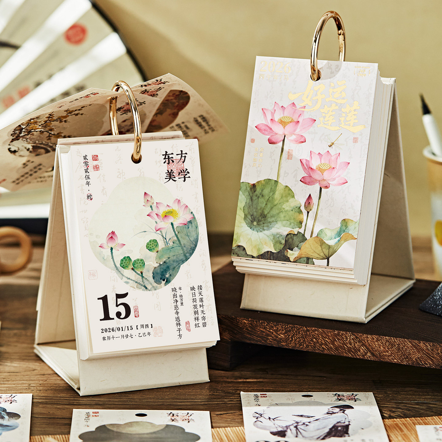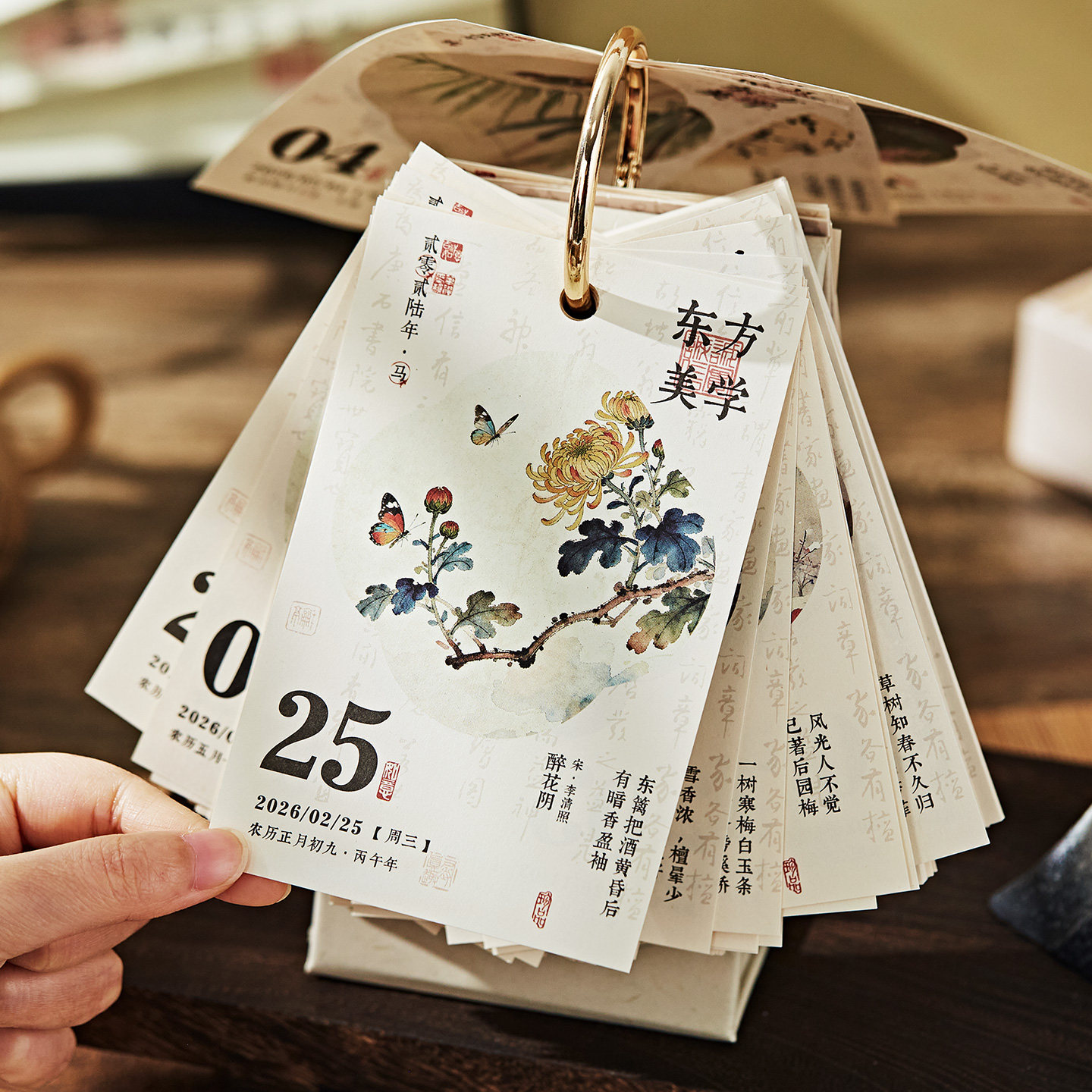 2026年新款古诗词日历诗画台历复古中国风高颜值桌面创意摆件记事计划本翻页倒计时年历商务手撕日历定制logo