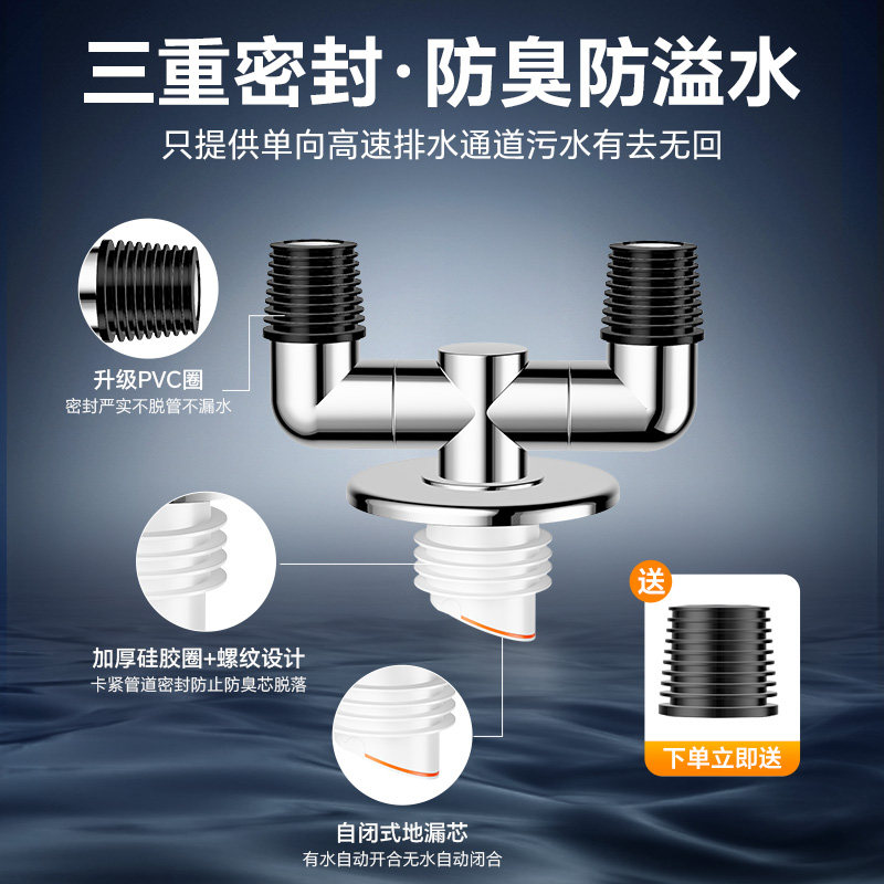 洗衣机下水止逆阀防反水下水管三头通地漏二合一排水管防溢水接头