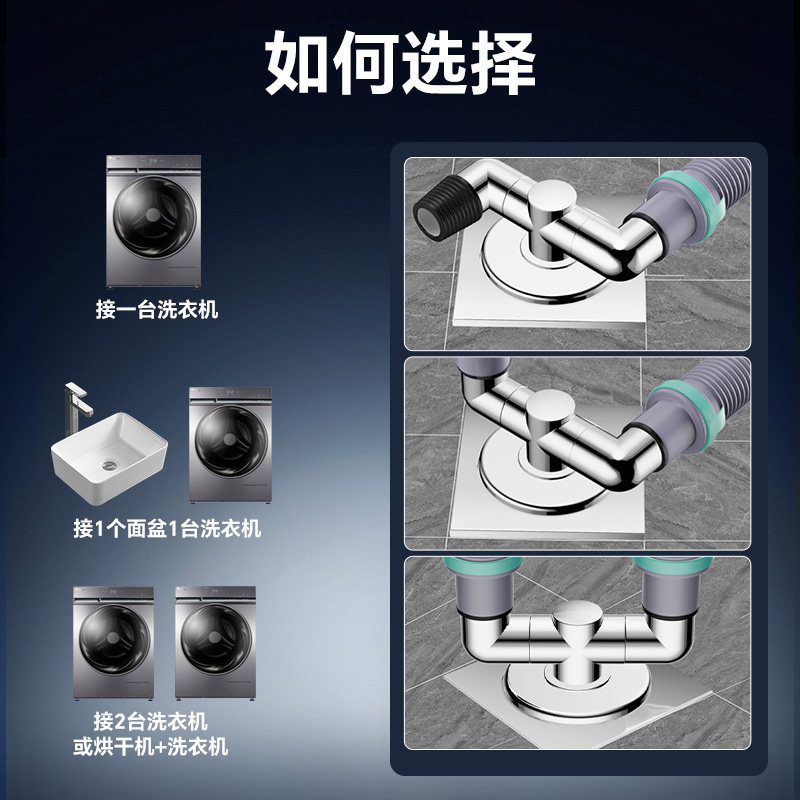 洗衣机地漏专用接头下水排水管道防反溢水二合一三通方形地漏盖子