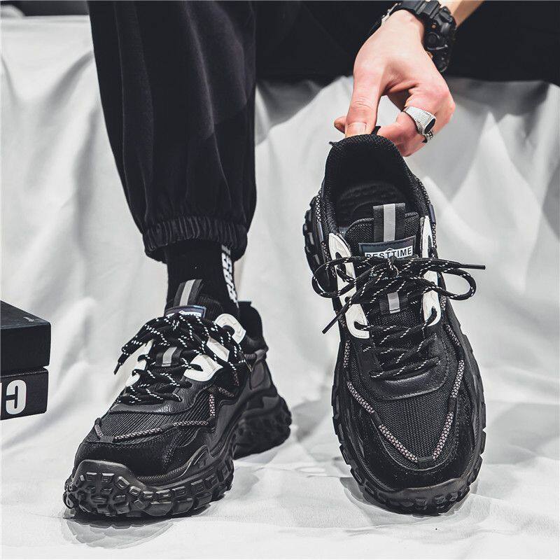 男鞋2026春季新款潮鞋潮流轮胎底运动鞋男士休闲跑步鞋男耐磨黑色
