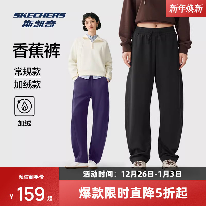 斯凯奇香蕉裤女款弯刀长裤宽松垂感时尚潮流休闲运动裤柔软舒适