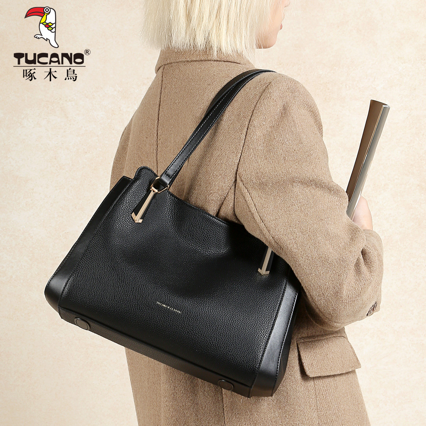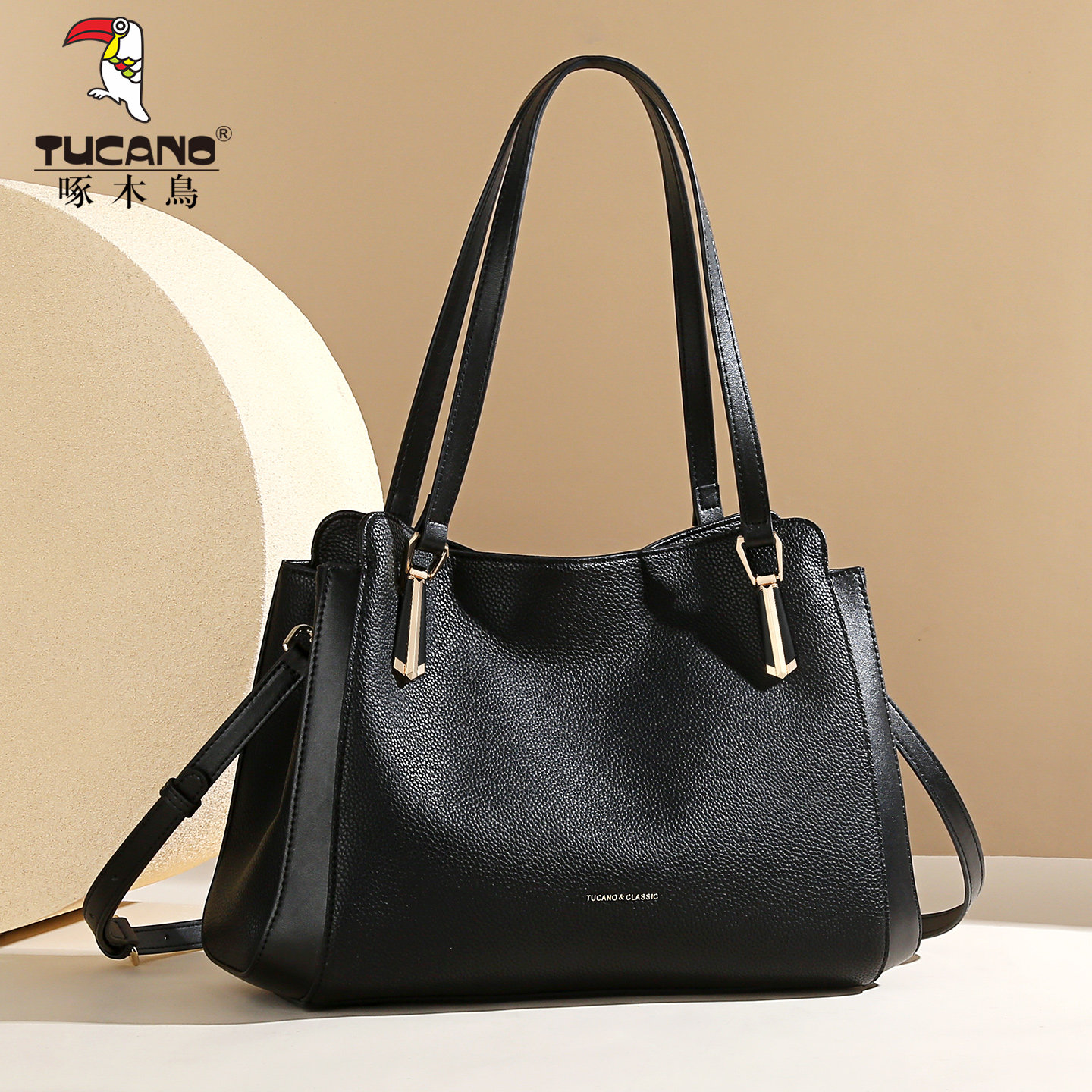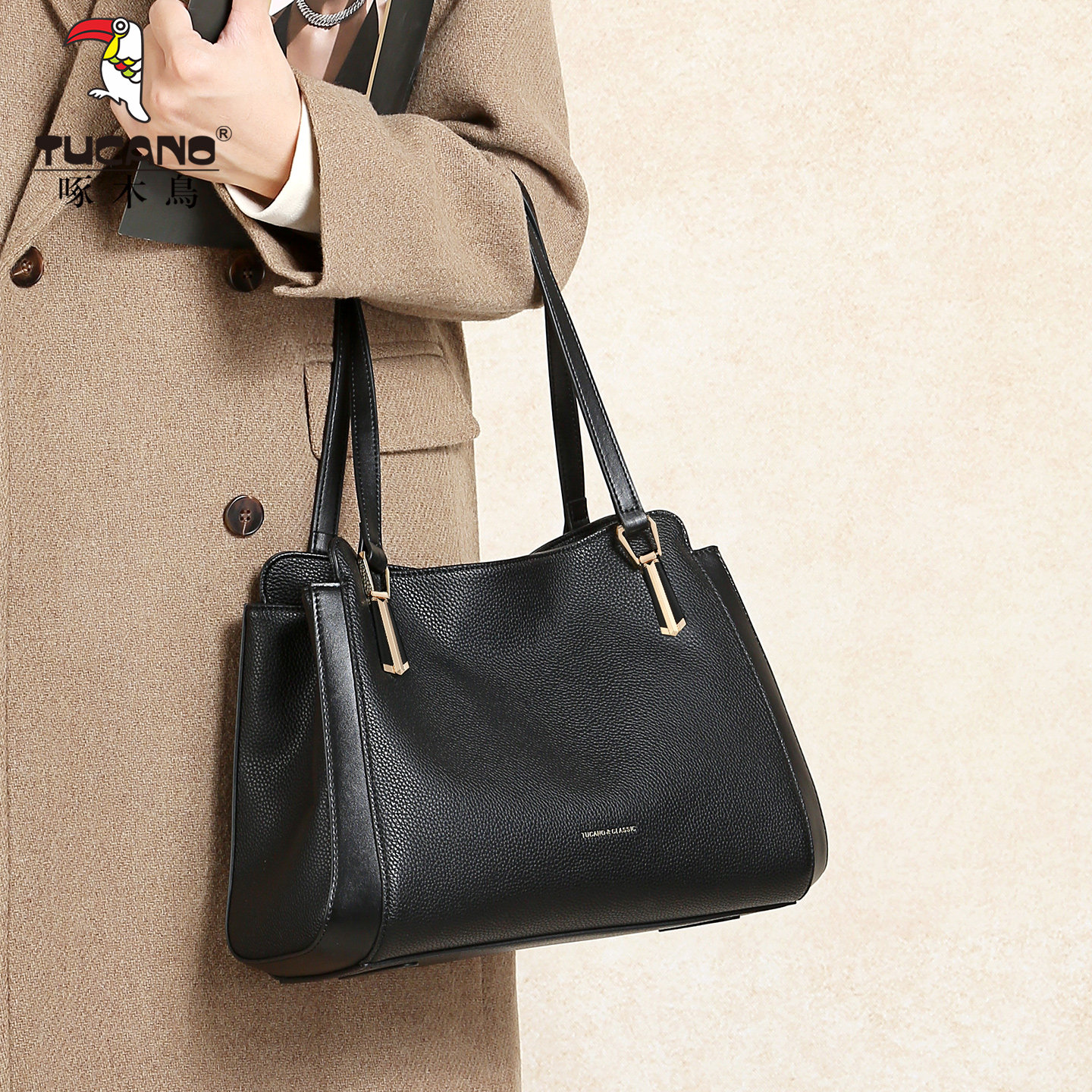 啄木鸟真皮女包2025新款通勤托特包单肩水桶大气送妈妈手提包斜挎