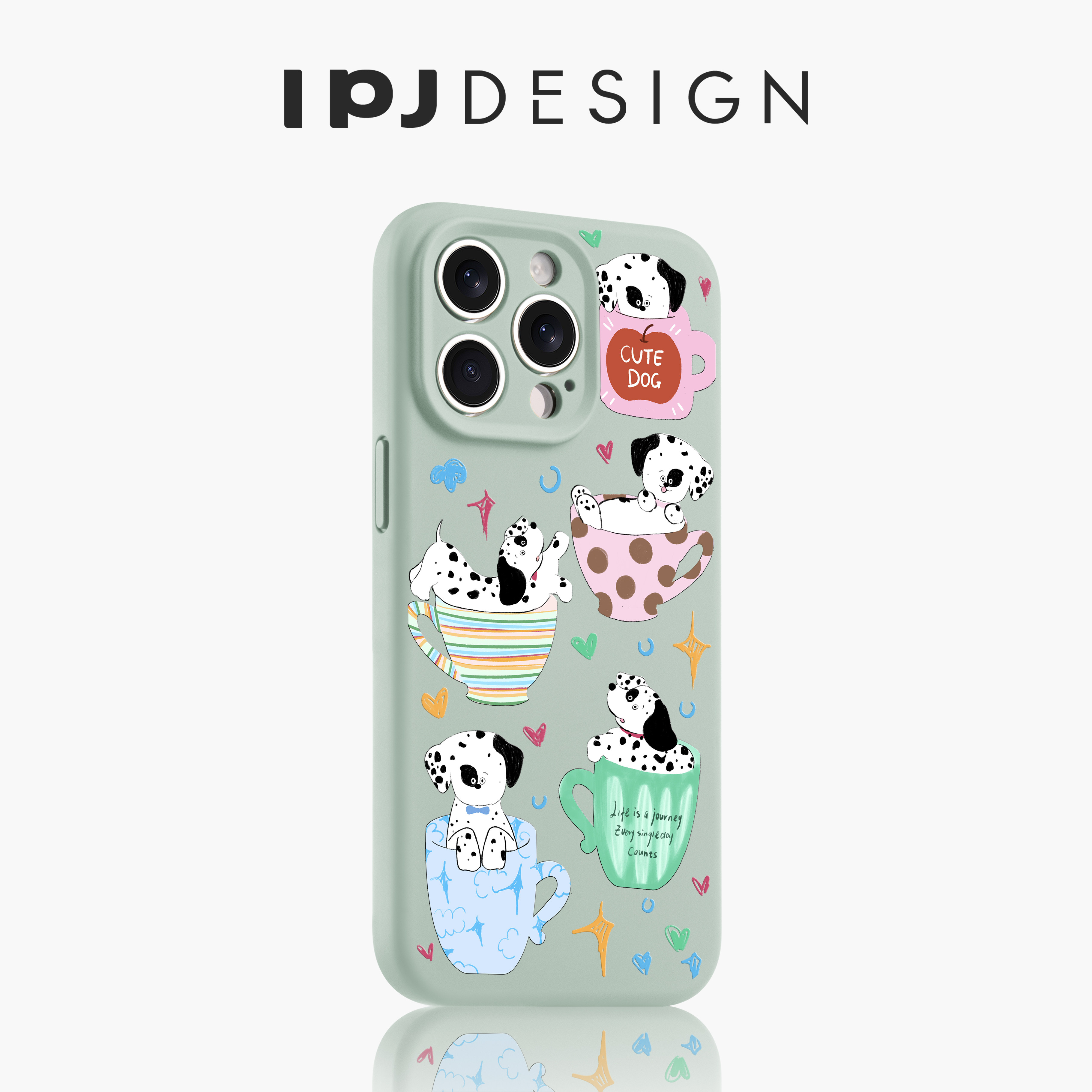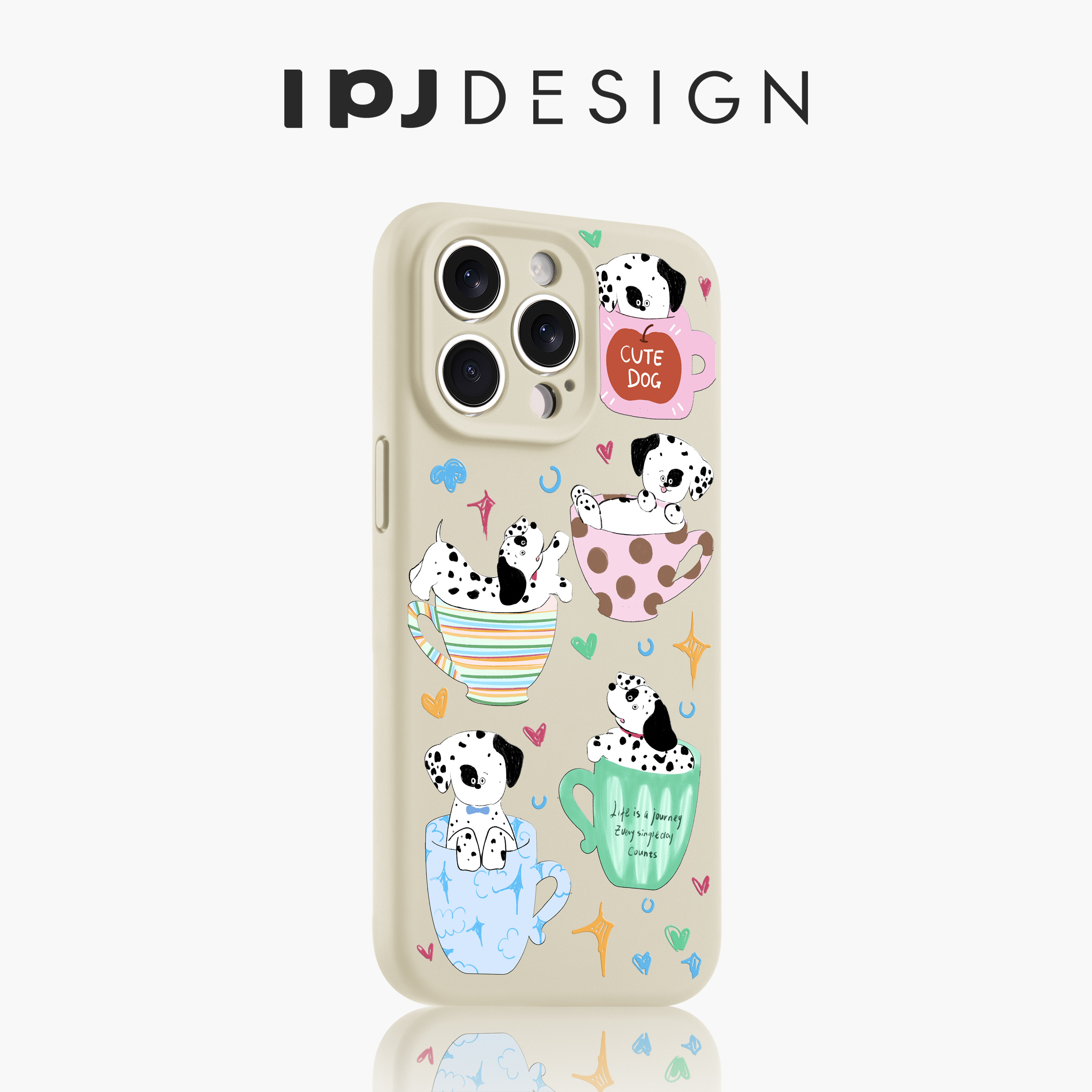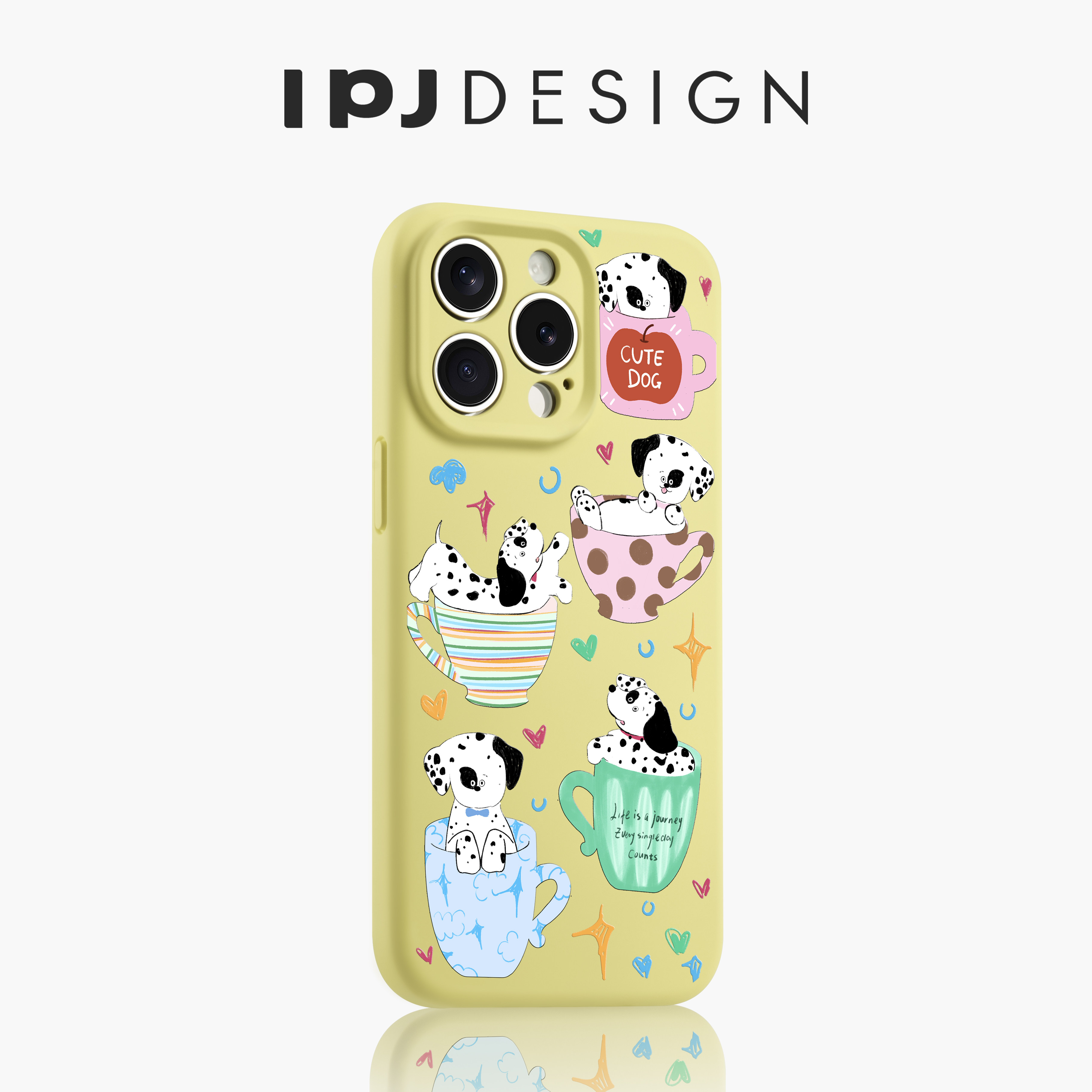 IPJ韩系卡通茶杯斑点狗17适用于iphone16promax苹果15PRO手机壳13卡通14套12防摔