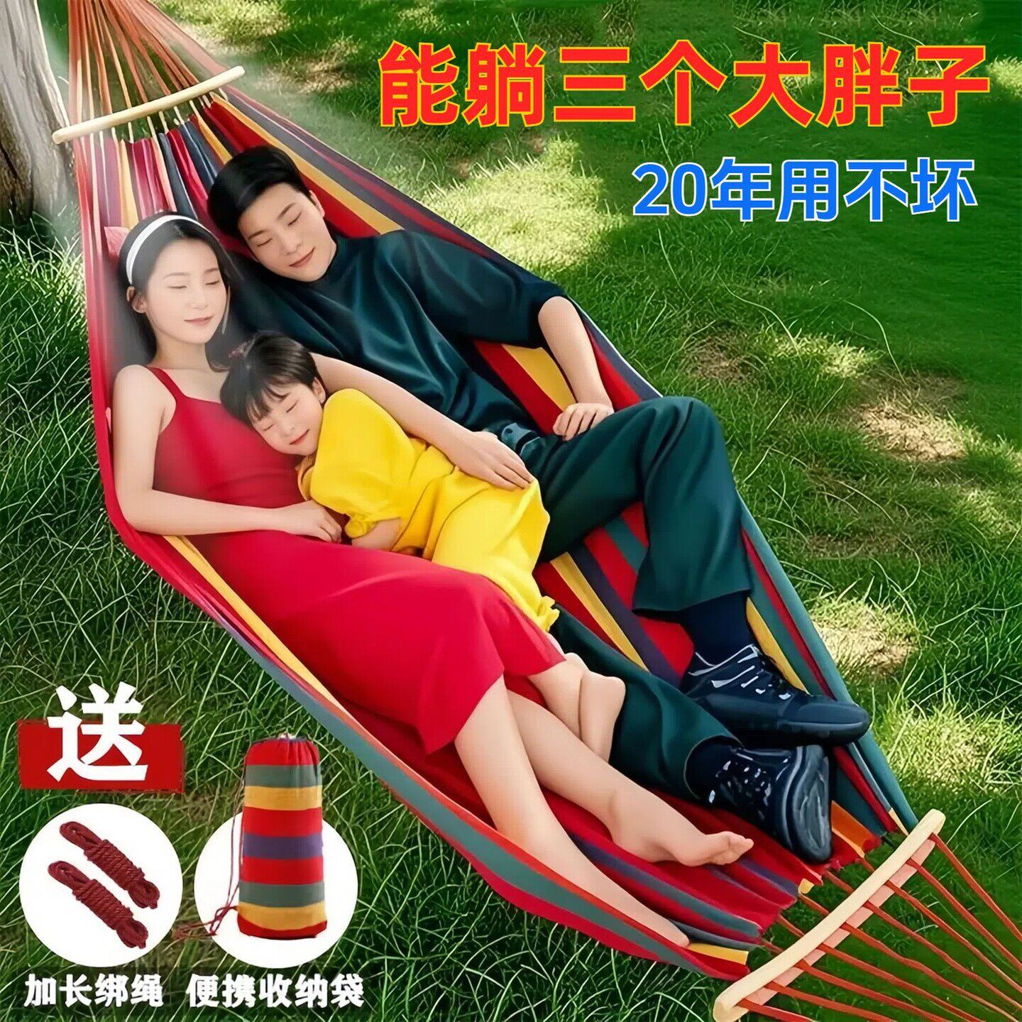 户外吊床防侧翻双人加厚帆布耐用学生寝室宿舍秋千吊椅加固绑树上