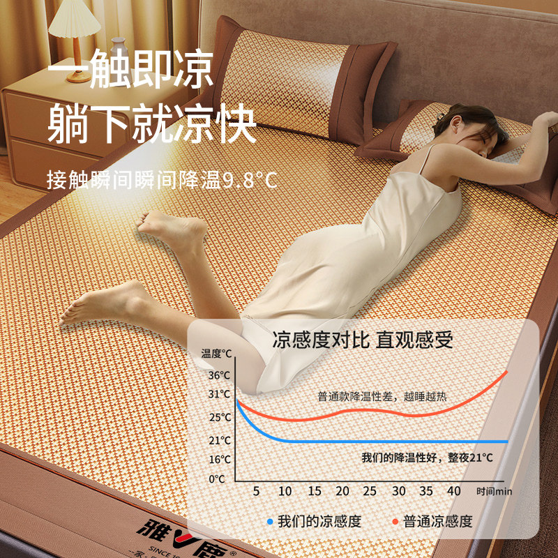 雅鹿加厚藤席夏凉席冰丝席夏天高档软席子空调席学生宿舍床笠床席