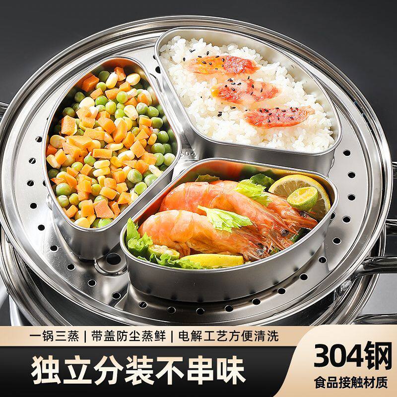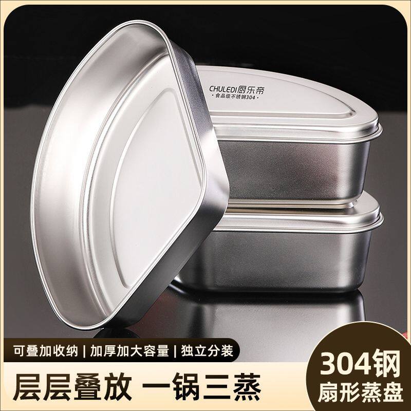 304不锈钢蒸盘带盖扇形蒸盒蒸锅蒸格蒸屉饭煲蒸碗蒸饭加厚保鲜碗