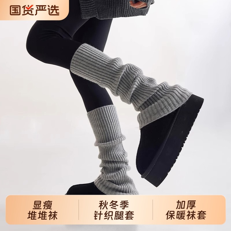 灰色堆堆袜套女袜子女秋冬加厚保暖中筒袜针织小腿套长袜配雪地靴