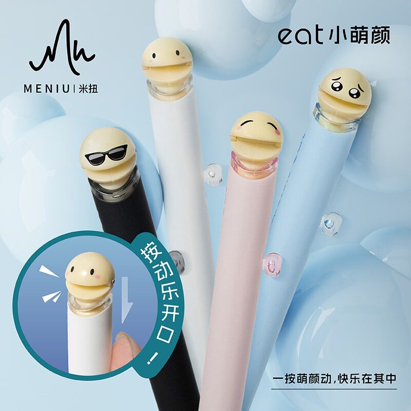 MENIU米扭中性笔小萌颜考试刷题笔按动笔高颜值初中高中学生顺滑学习搭子套装速干顺滑日常书写黑色0.5黑笔
