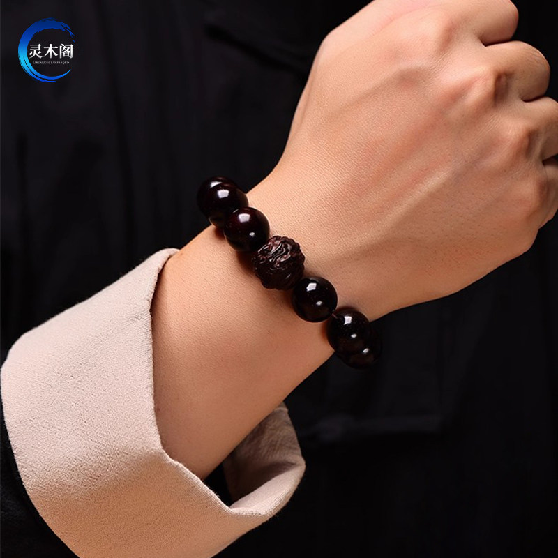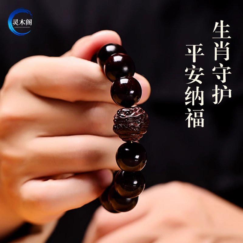 印度小叶紫檀手串檀香木质男士文玩佛珠马年本命年十二生肖手链