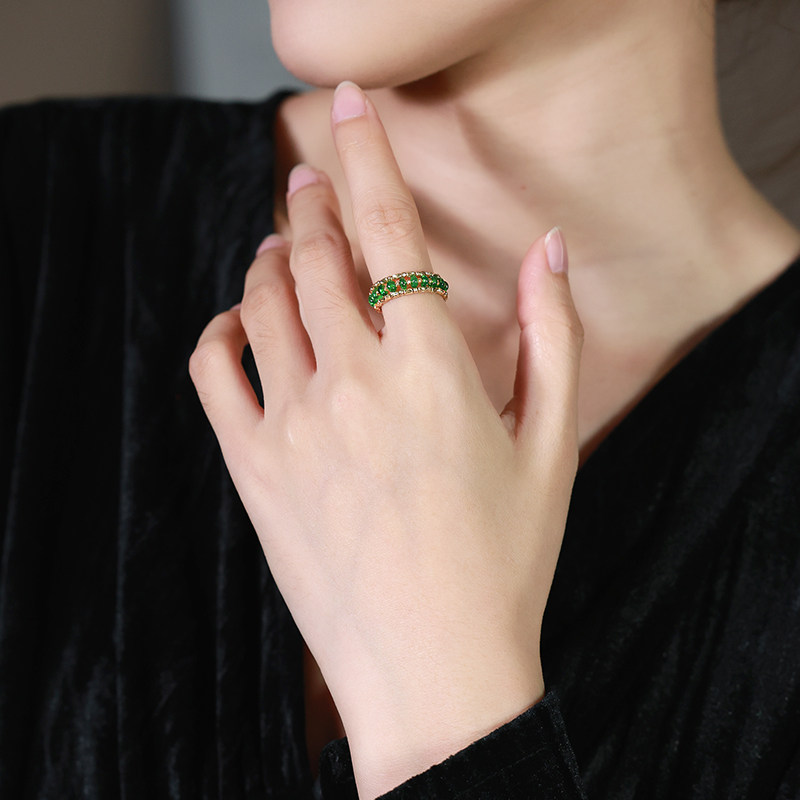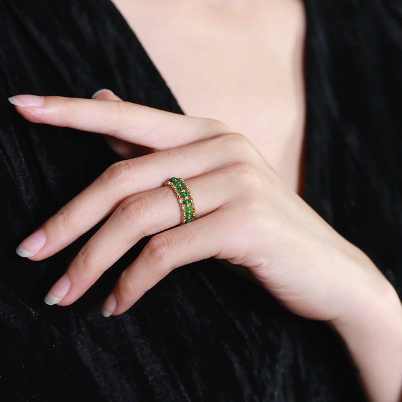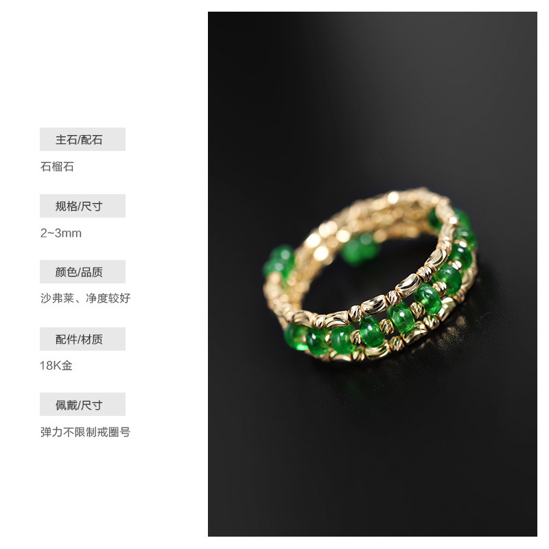 若华珠宝蕉月 沙弗莱石榴石戒指女18K金弹力尾戒多层宝石指环定制