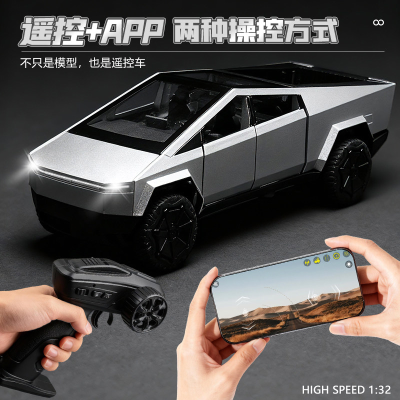 1:32特斯拉皮卡越野赛车儿童电动遥控车男孩玩具汽车仿真合金模型
