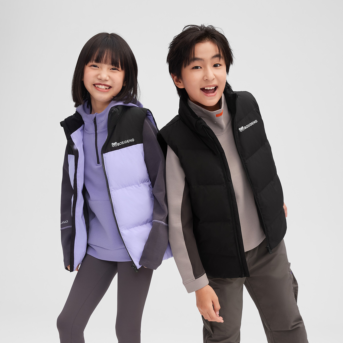 波司登儿童羽绒服2025新款户外运动拼色立领羽绒马甲保暖男童女童