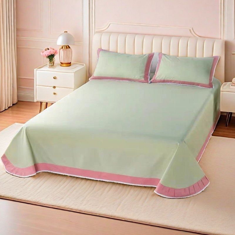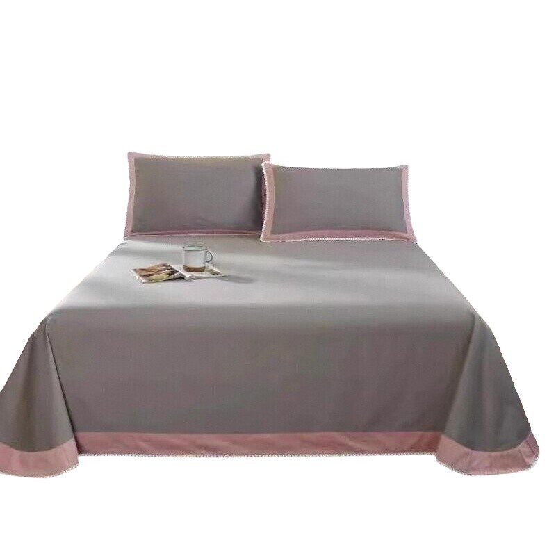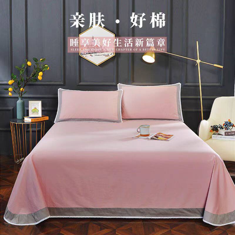 纯棉床单单件100全棉加厚新款斜纹高端简约纯色枕套圆角花边四季