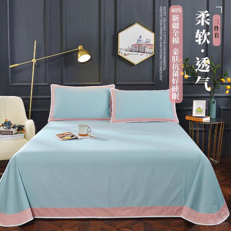 小清新床单单件纯棉100全棉三件套双人大床单人1.5米宿舍被单秋冬