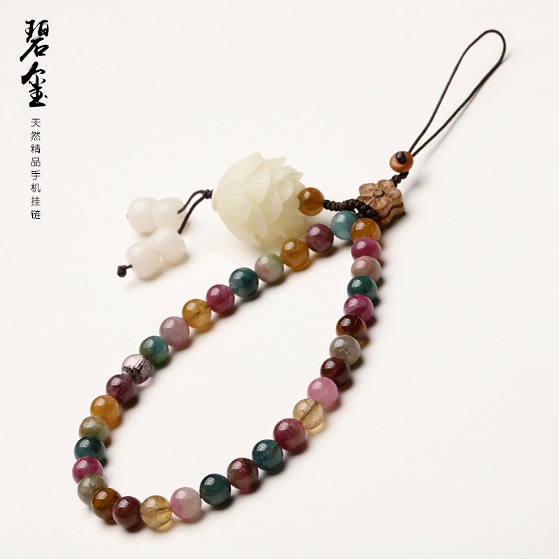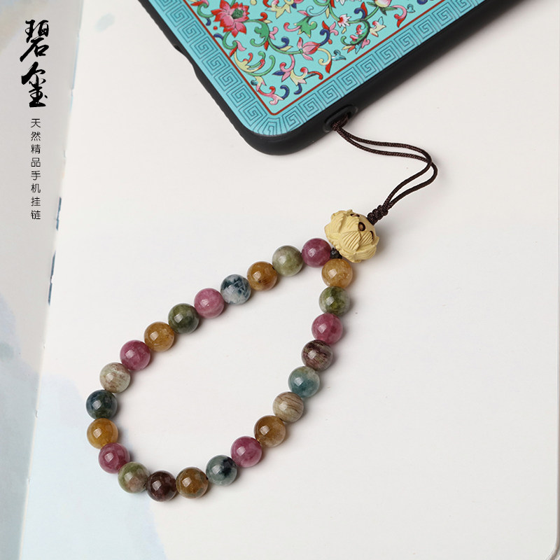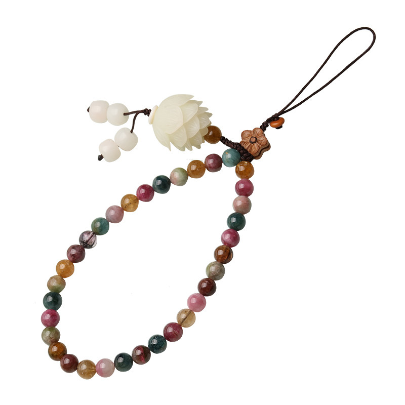 个性碧玺手链挂件手腕挂手女短款挂绳天然水晶饰品莲挂饰