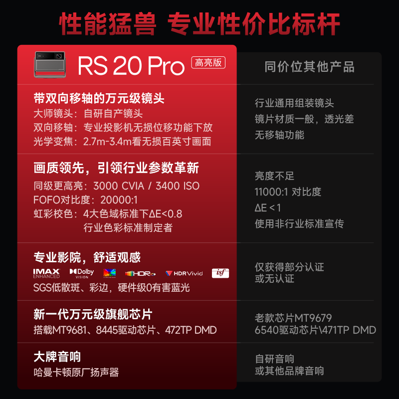 【全国补贴 立减15%】极米RS 20 Pro高亮版三色激光变焦移轴4K家用投影仪超高清高亮投影机