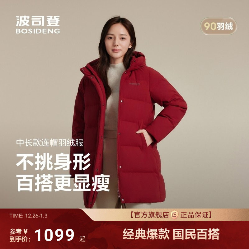 【新年红色】波司登25新款羽绒服女连帽长款气质百搭保暖通勤90绒