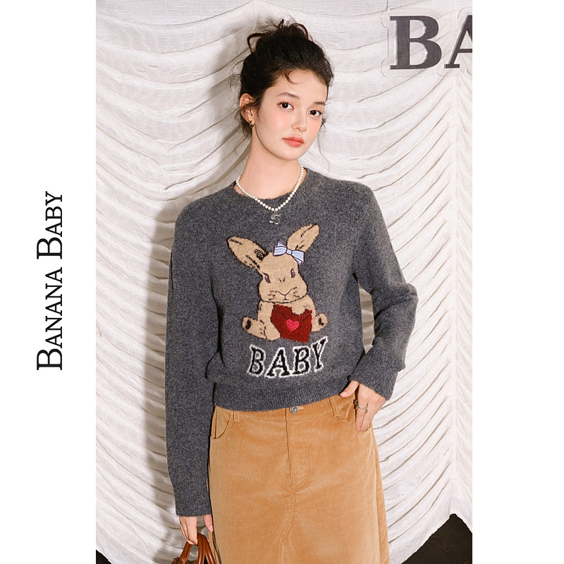 【绵羊毛】BANANA BABY2025年冬新款原创提花刺绣软糯毛衣女套头