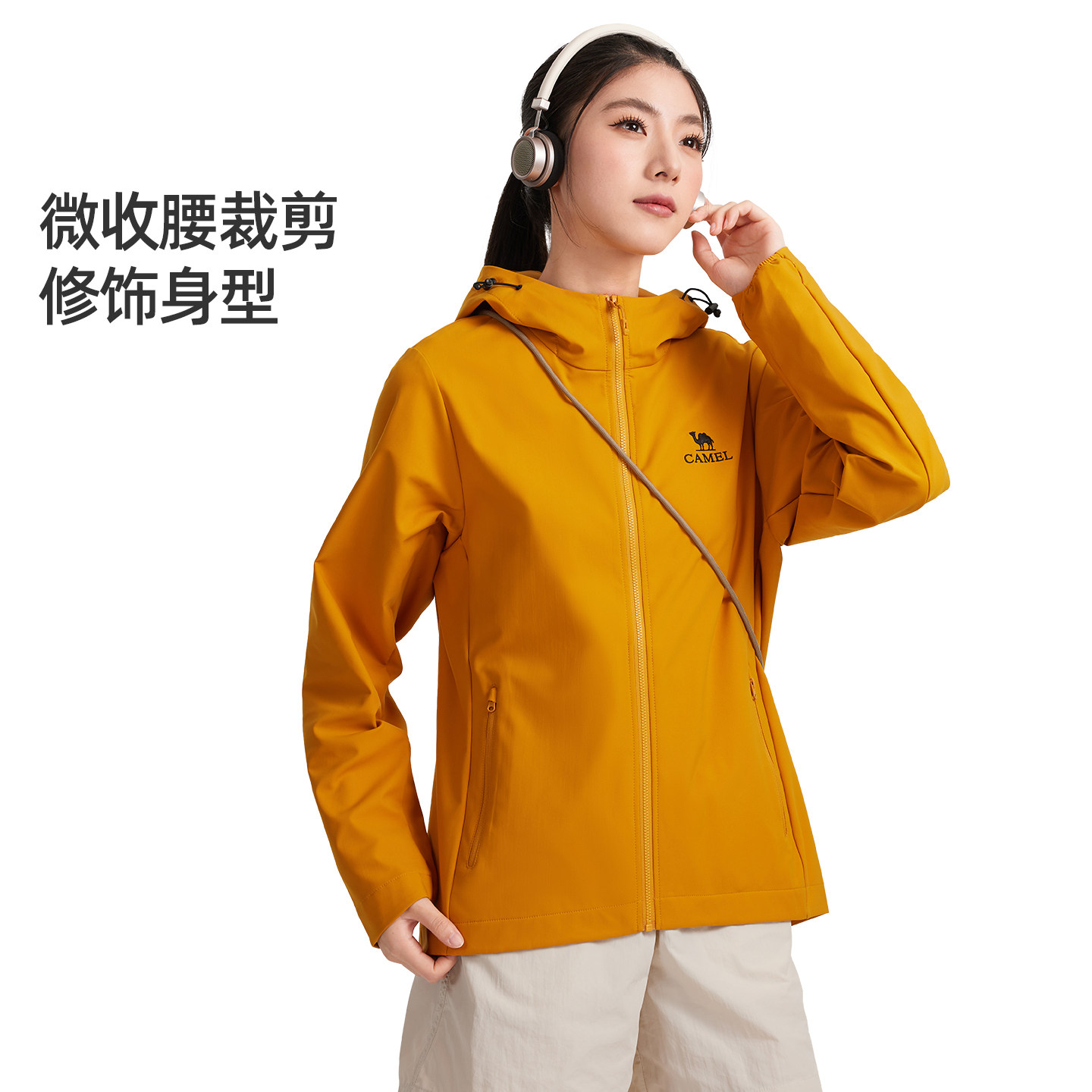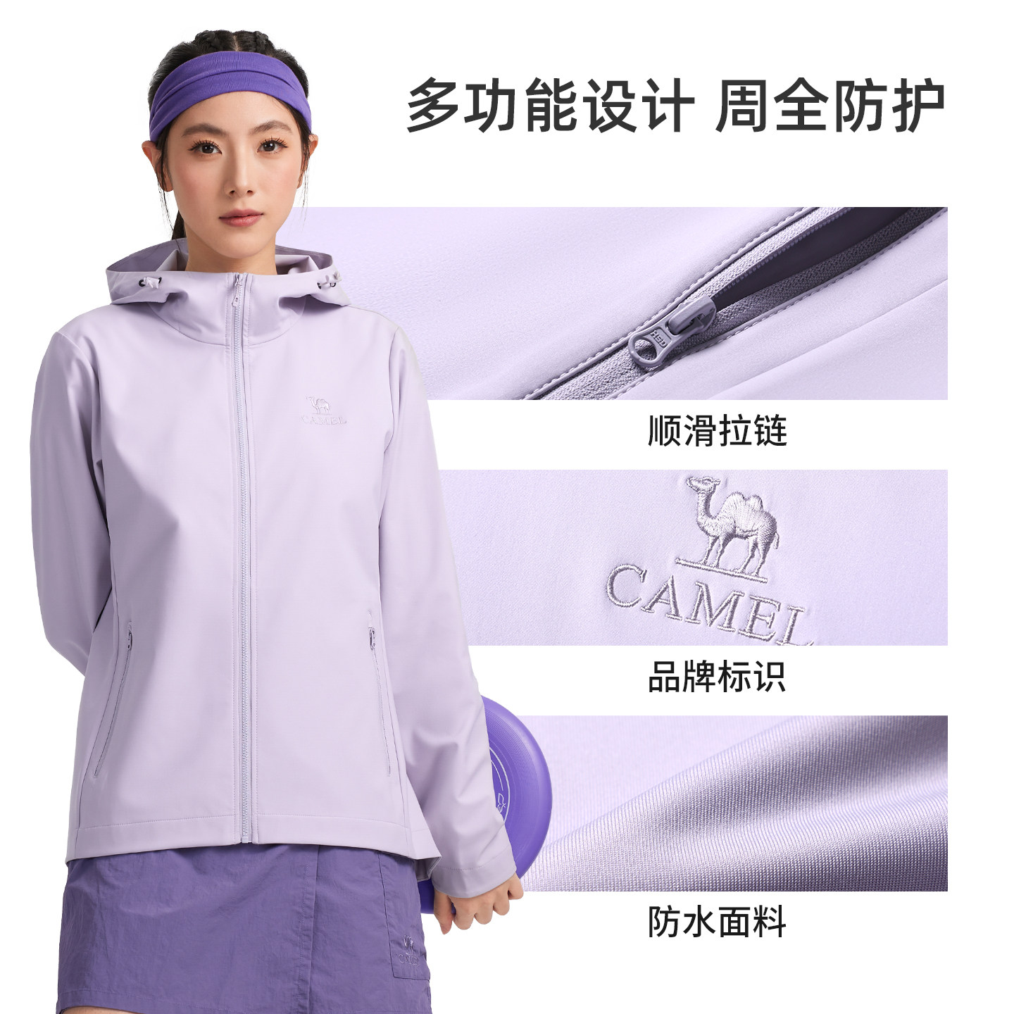 骆驼户外软壳衣外套男春季防风防泼水薄绒运动夹克连帽登山服女