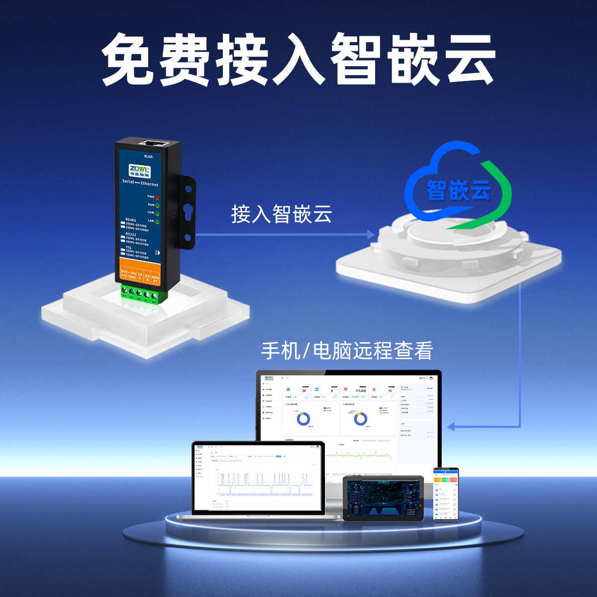 智嵌物联串口服务器485转网口网关MQTT通讯HTTP串口转以太网模块挂耳安装JSON格式modbus tcp转rtu主动轮询