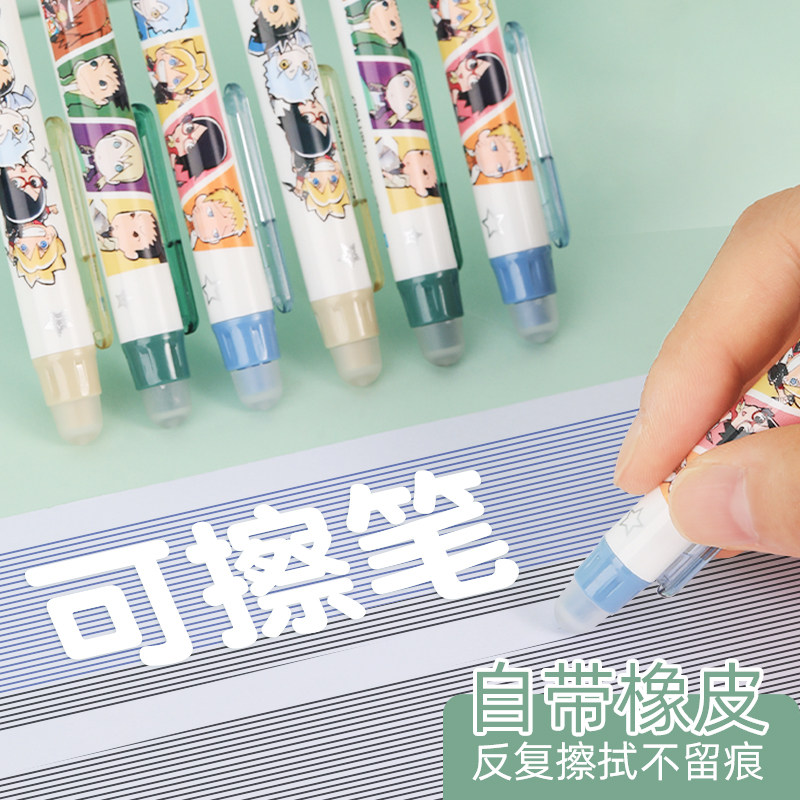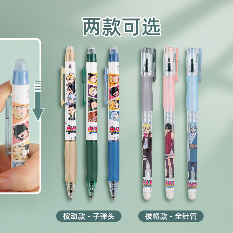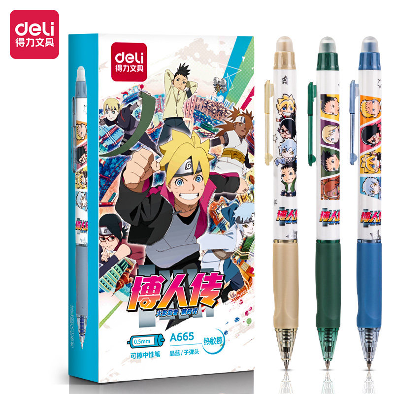 【火影忍者】得力按动可擦中性笔0.5MM学生用可擦笔矫姿笔正姿按动黑色晶蓝易擦热敏3-5年级用卡通男生