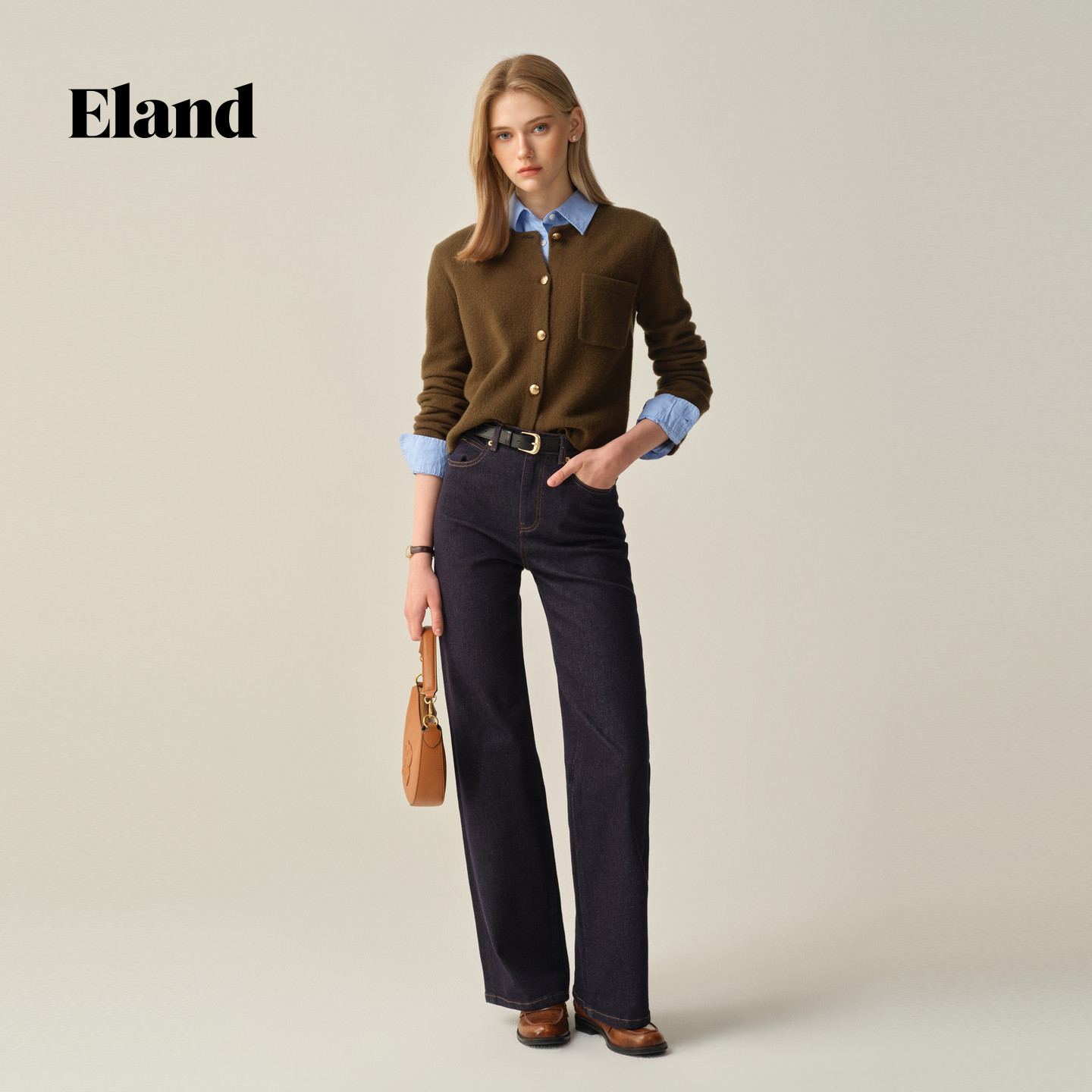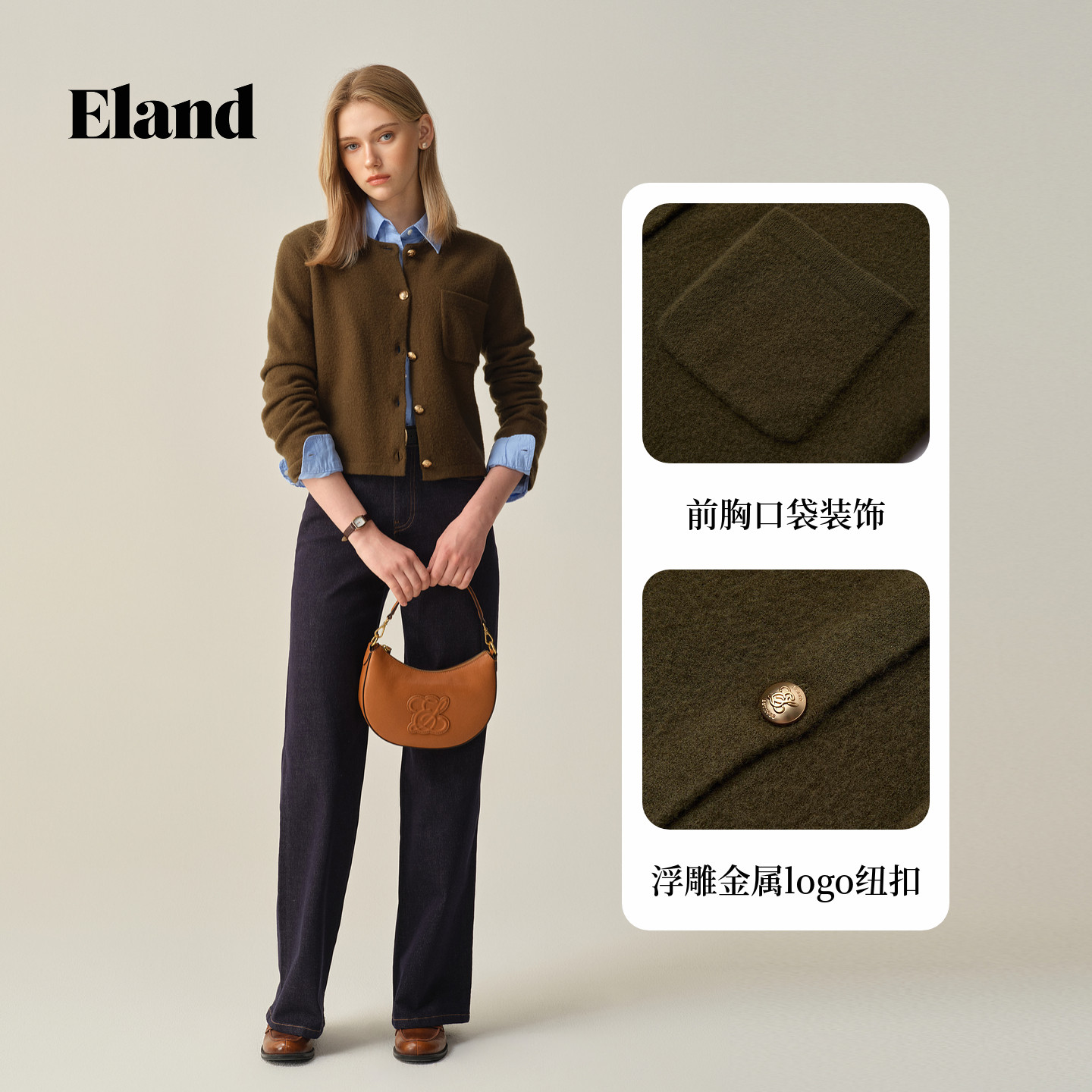 【100%绵羊毛】Eland衣恋毛针织衫女长袖开衫单排扣2025冬季新款