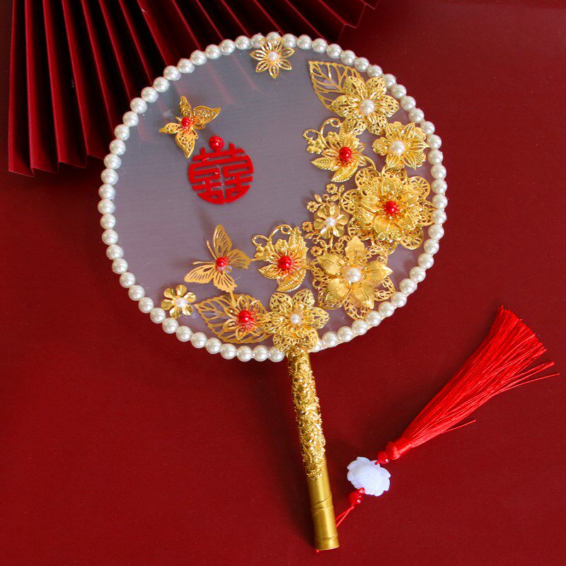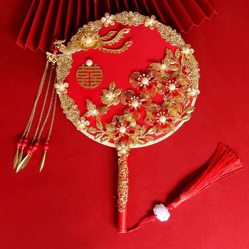新中式团扇手捧花 婚礼新娘u喜扇龙凤褂宫扇圆扇秀禾服团扇diy材