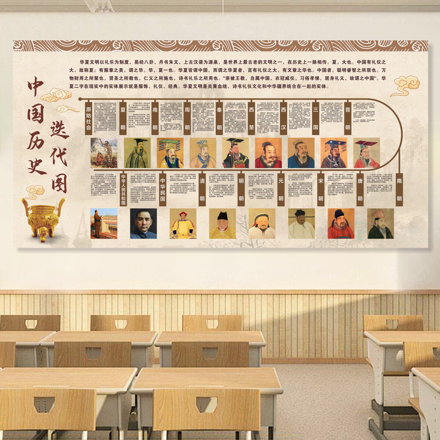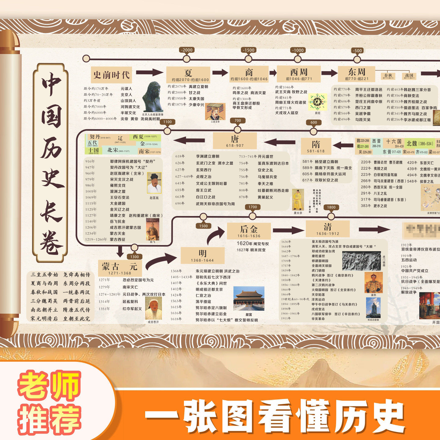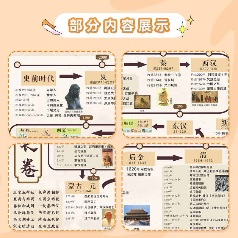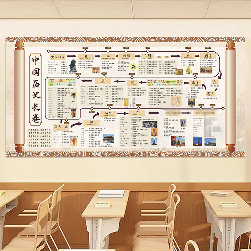 初中历史时间轴挂图中国古代史大事件年表朝代顺序演化图长卷墙贴