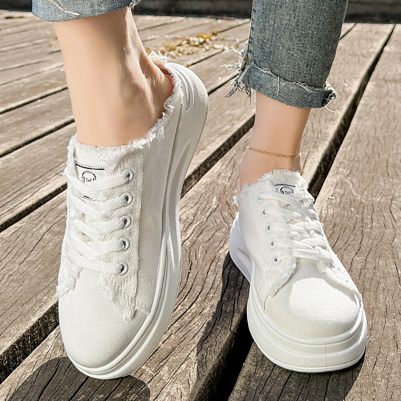 小白鞋子女2026新款爆款厚底百搭一脚蹬半拖鞋时尚休闲帆布板鞋潮