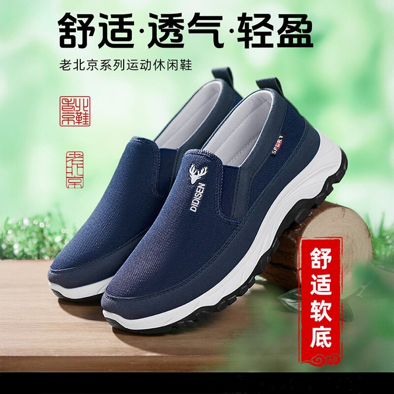 老北京布鞋男士牛筋底软底防滑耐磨透气休闲鞋防臭男士中年爸爸鞋