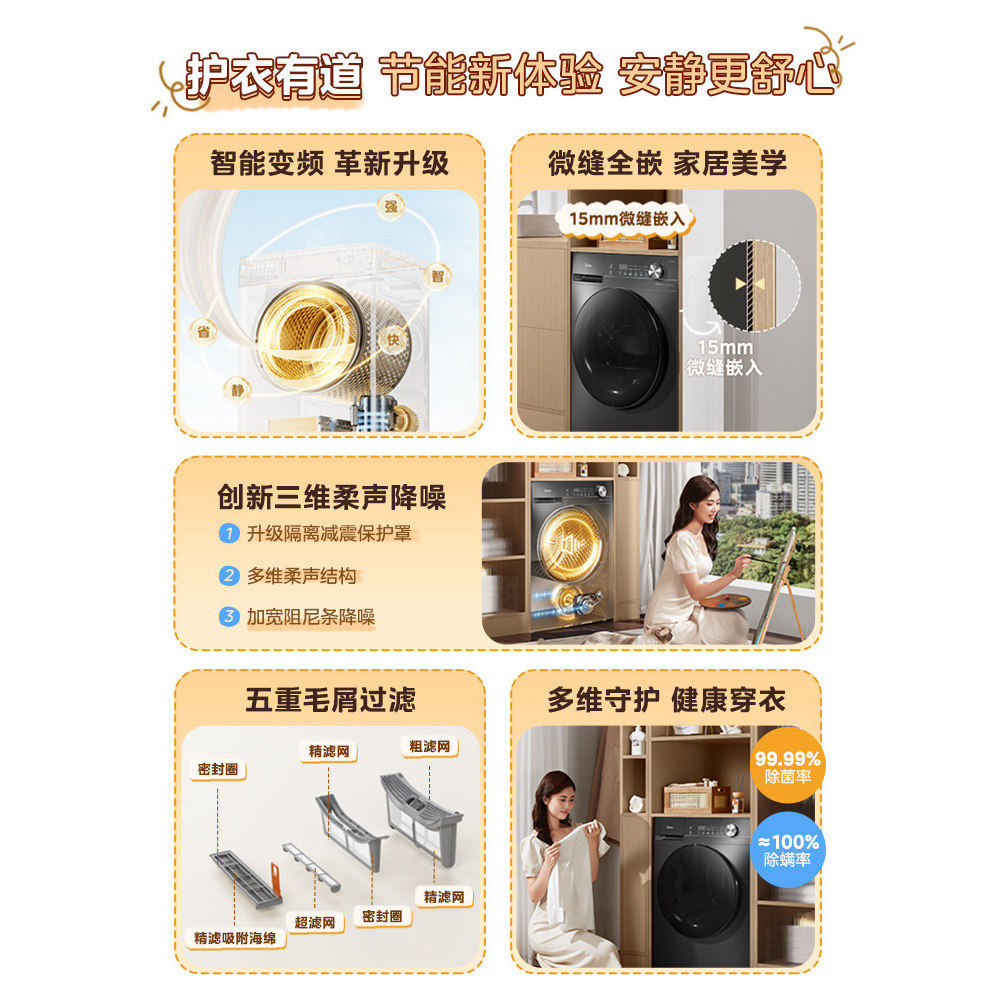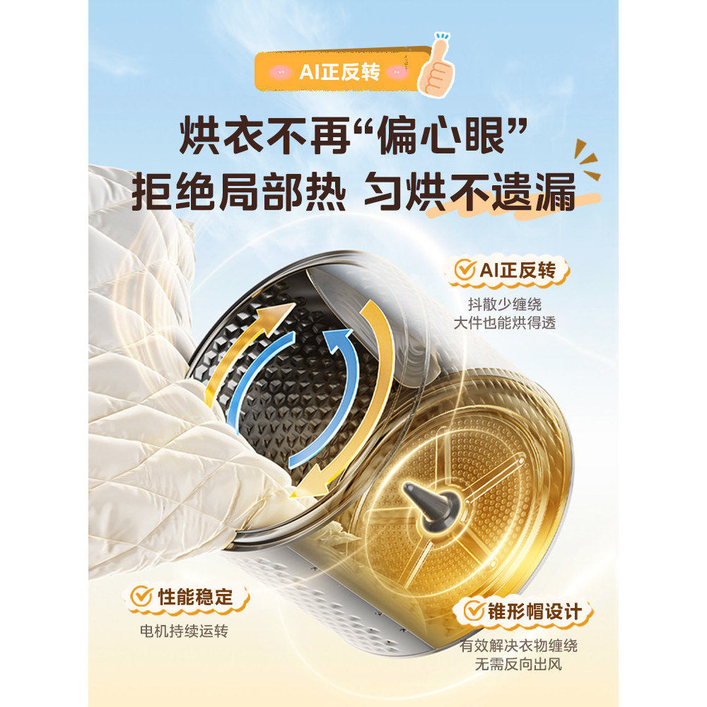 美的10kg家用全自动大容量变频热泵烘干机除菌除螨滚筒干衣机