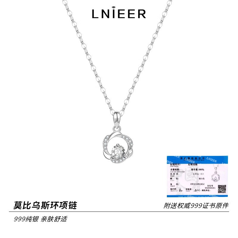 S999纯银莫比乌斯项链女款轻奢小众高级感锁骨链2026爆款颈链足银