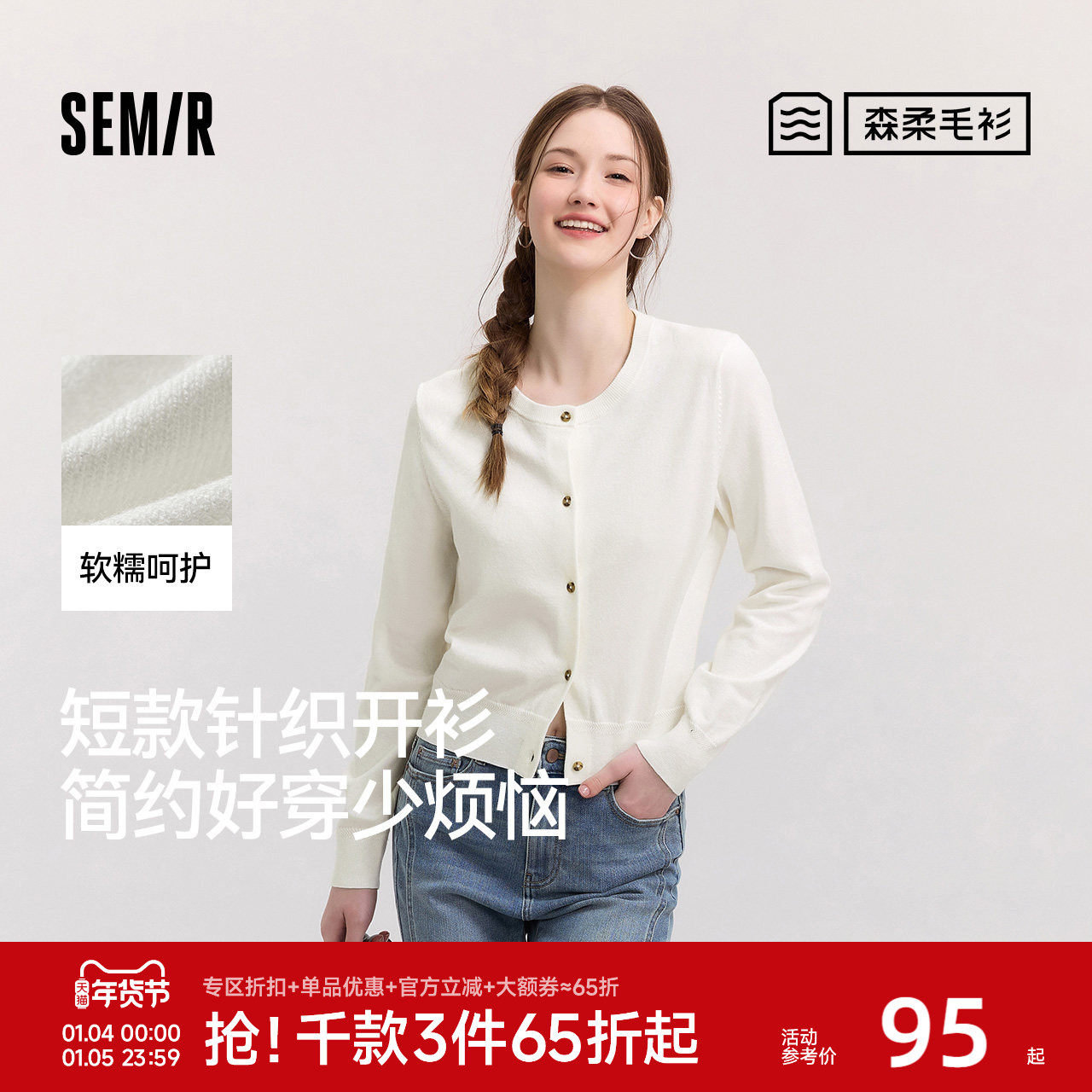 森柔|森马针织开衫女春季短款圆领正肩上衣气质温柔显瘦基础毛衫