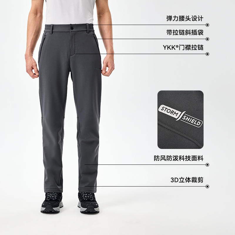 【风盾】伯希和户外软壳裤男秋冬耐磨防风女弹力抓绒保暖运动长裤