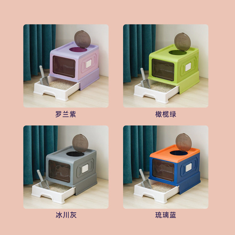 大号猫砂盆全封闭抽屉式防外溅加厚猫厕所带蹭毛器猫沙盆厂家直销