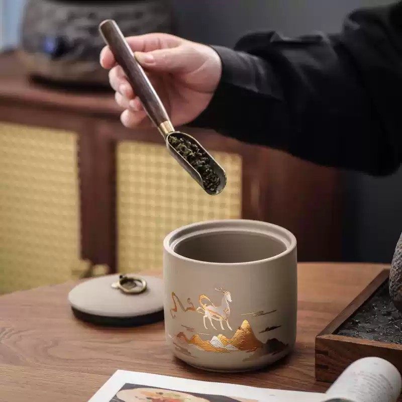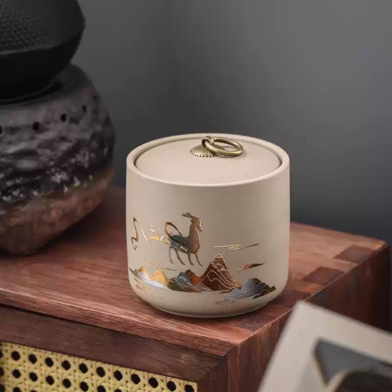 新款粗陶茶叶密封罐红茶绿茶普洱储物罐家用花草果干散装罐礼品盒