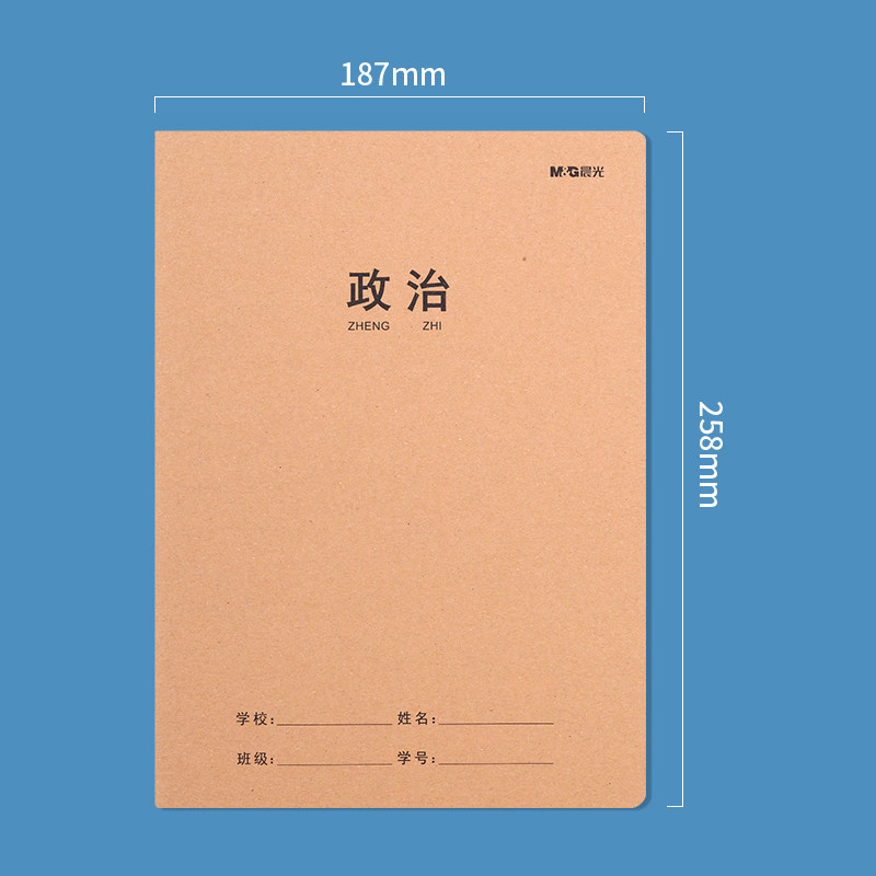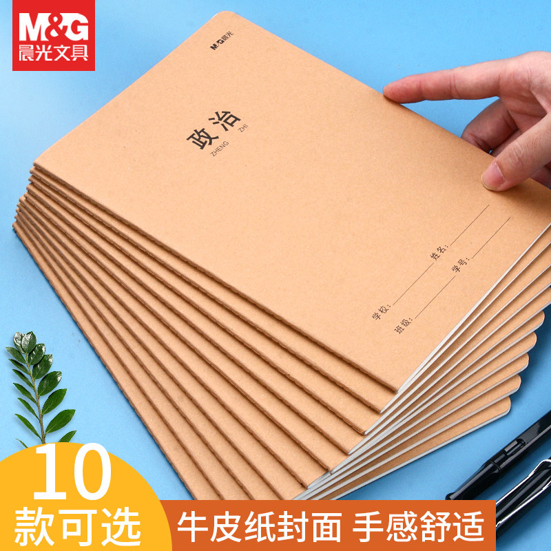 晨光政治本16K初中生学科本课文抄写作业牛皮纸封面缝线装订练习薄加厚学校统一标准本子米黄护眼纸张科目本