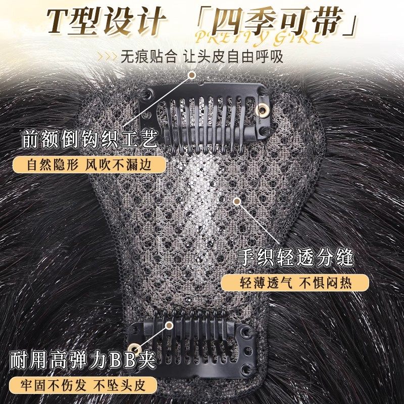 刘海假发女片头顶补发增发量真发遮白发蓬松高颅顶无痕假刘海前额