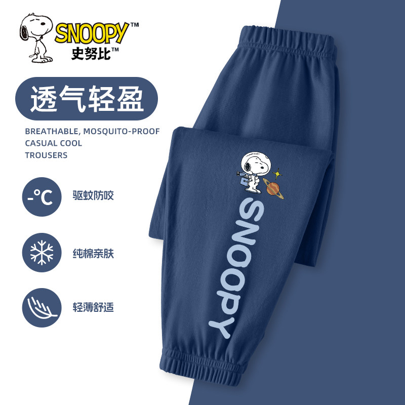 史努比男童防蚊裤夏季薄款透气长裤男大童帅气运动裤儿童夏季裤子