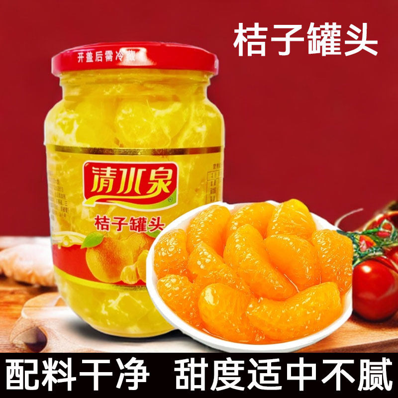 清水泉纯糖水黄桃罐头510g*4瓶装多口味水果罐头桔子梨一整箱批发