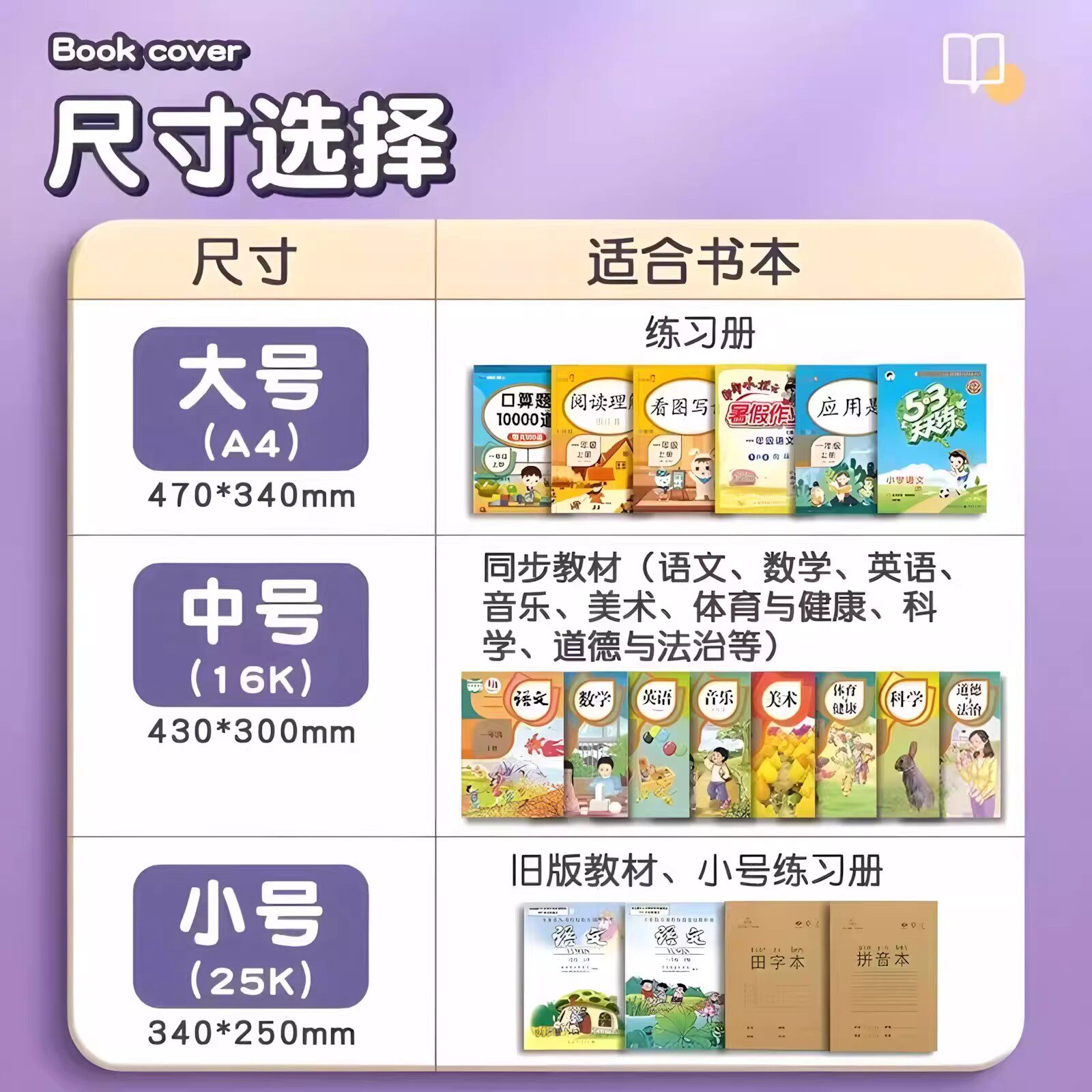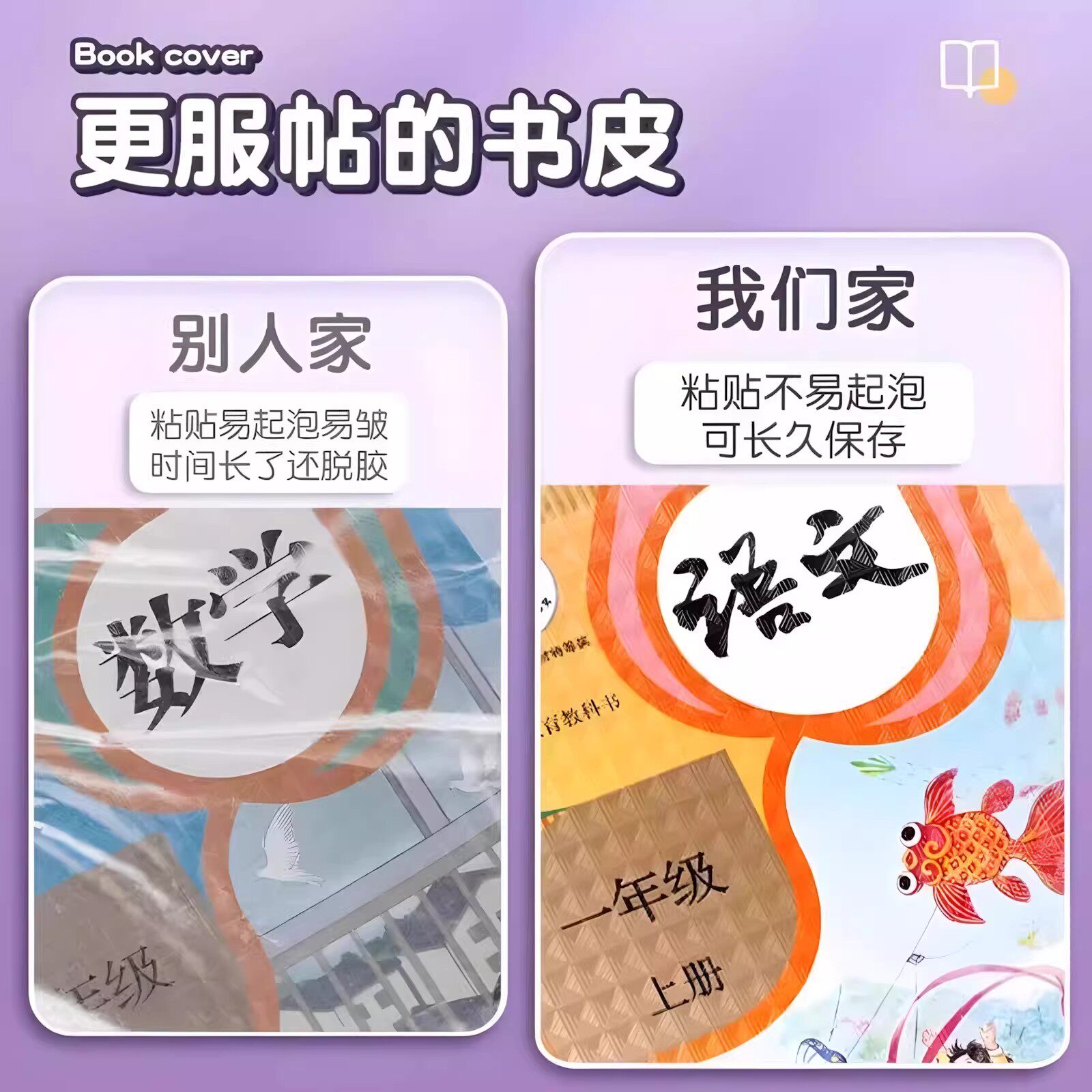 包书皮自粘透明磨砂书皮纸小学生专用一年级二三年级下册中号16k课本2026新款书本保护套书套包书膜全套贴纸