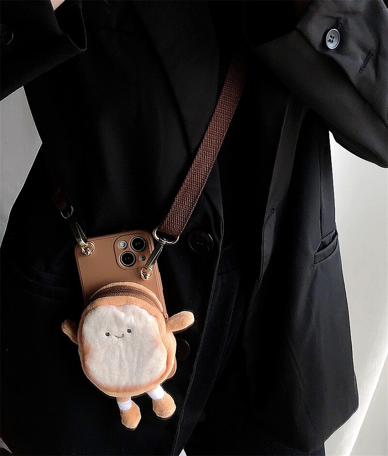 吐司面包零钱包三星s24+手机壳s25ultra软壳s23fe斜跨挂脖s10/s9/s8保护套note10pro可爱s22/21/20创意a16/13