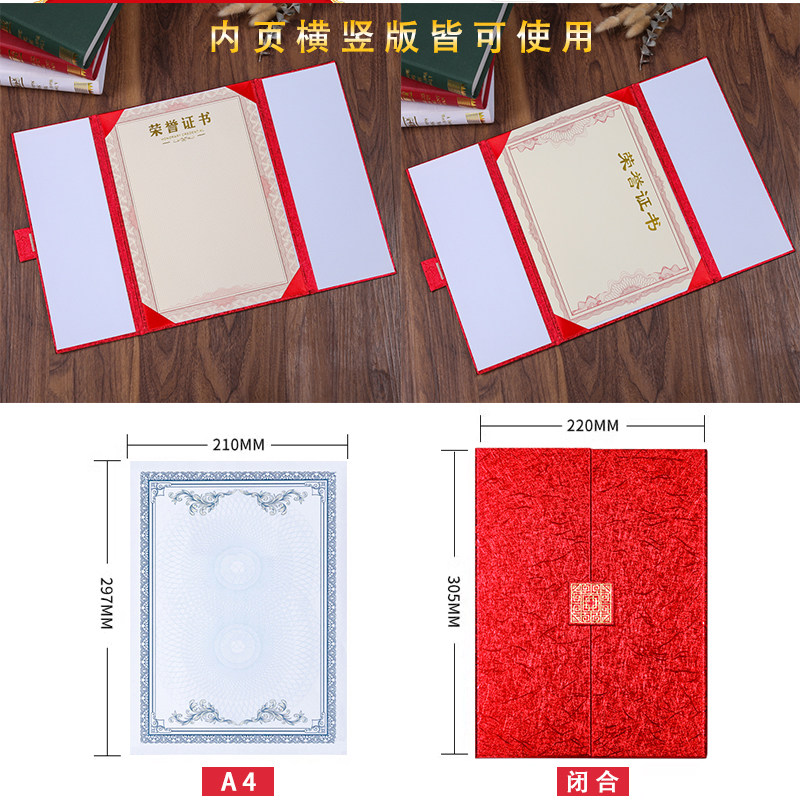 荣誉证书高档珠光封面空白内页奖状纸a4打印商务签约仪式本办公优秀员工培训定制职业技能颁奖获奖证书保护套