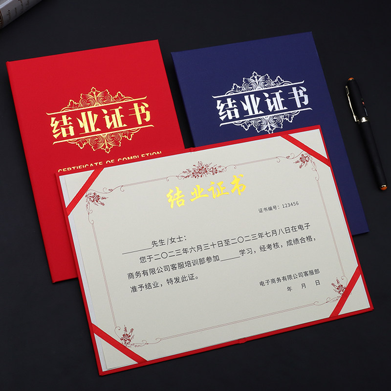 结业证书封皮定做外壳上岗培训证书进修岗位职业技能等级封面定制结题证烫金聘书荣誉证书蓝色a4内页打印