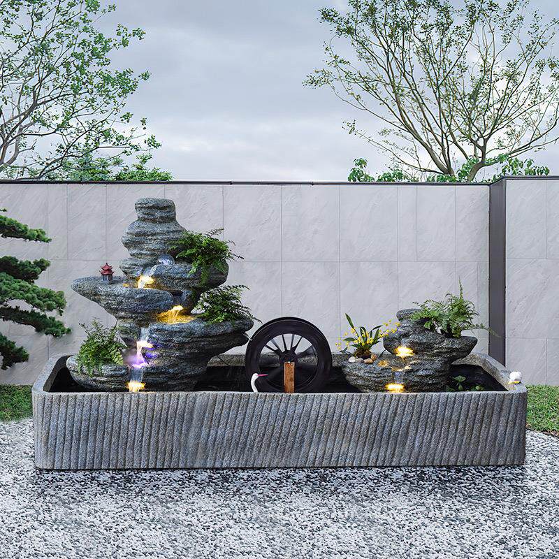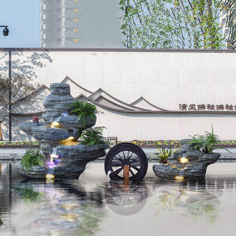 大型假山流水喷泉瀑布景观酒店大厅户外别墅庭院花园室内鱼池摆件