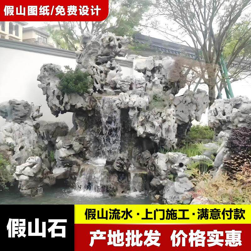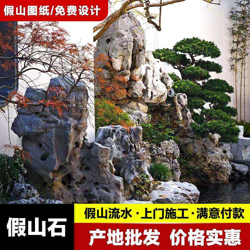 天然太湖石别墅鱼池假山流水造景石头草坪点缀景观石石材原石