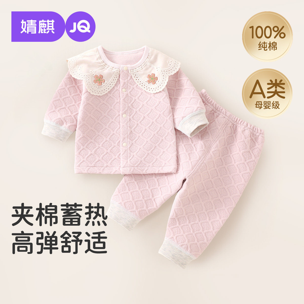 婧麒婴儿秋衣套装秋冬季儿童分体女童秋裤夹棉衣服宝宝保暖内衣