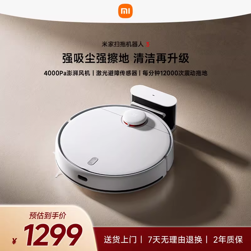 【强效清洁】小米米家扫地机器人3家用全自动智能扫拖一体机